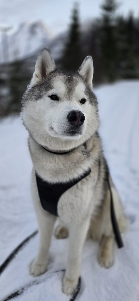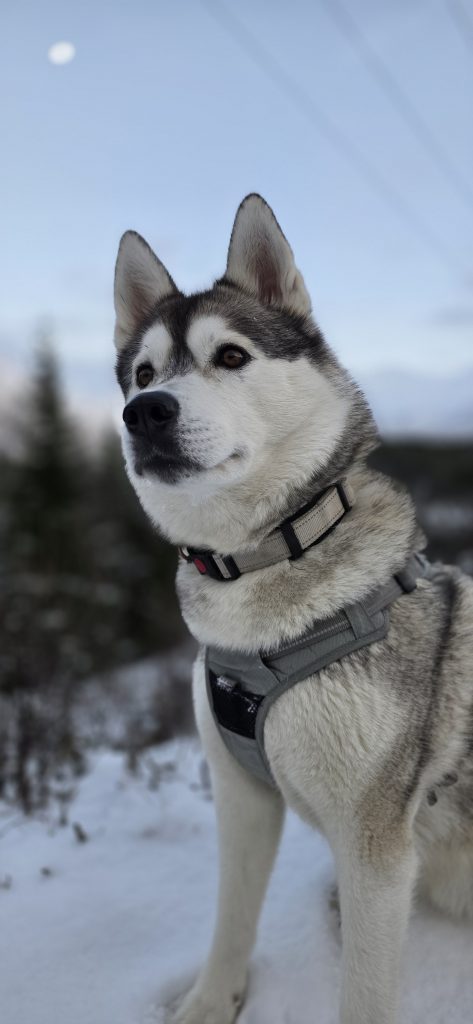 He’s also a very vokal boy, and loves to talk to everyone we meet. We often meet people commenting to him «Why are you so angry?», and we’ll have to tell them that he’s not, he just loves to talk to people. Guess that is a common mistake people make about talking huskies.